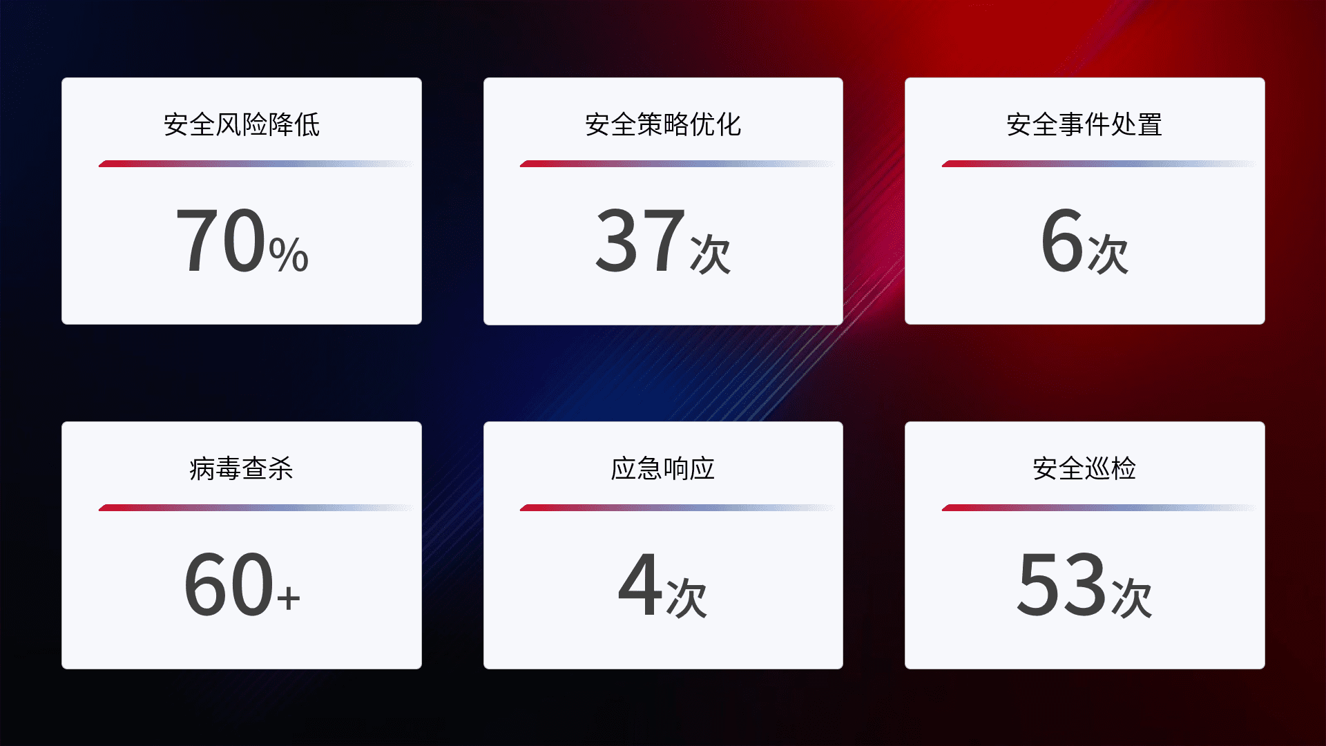 提供全面的安全事件报告体系,,包括处置报告、、、、周报、、、、季度和年度总结,,,结合持续监控,,,帮助客户深入了解网络安全状况。。。。